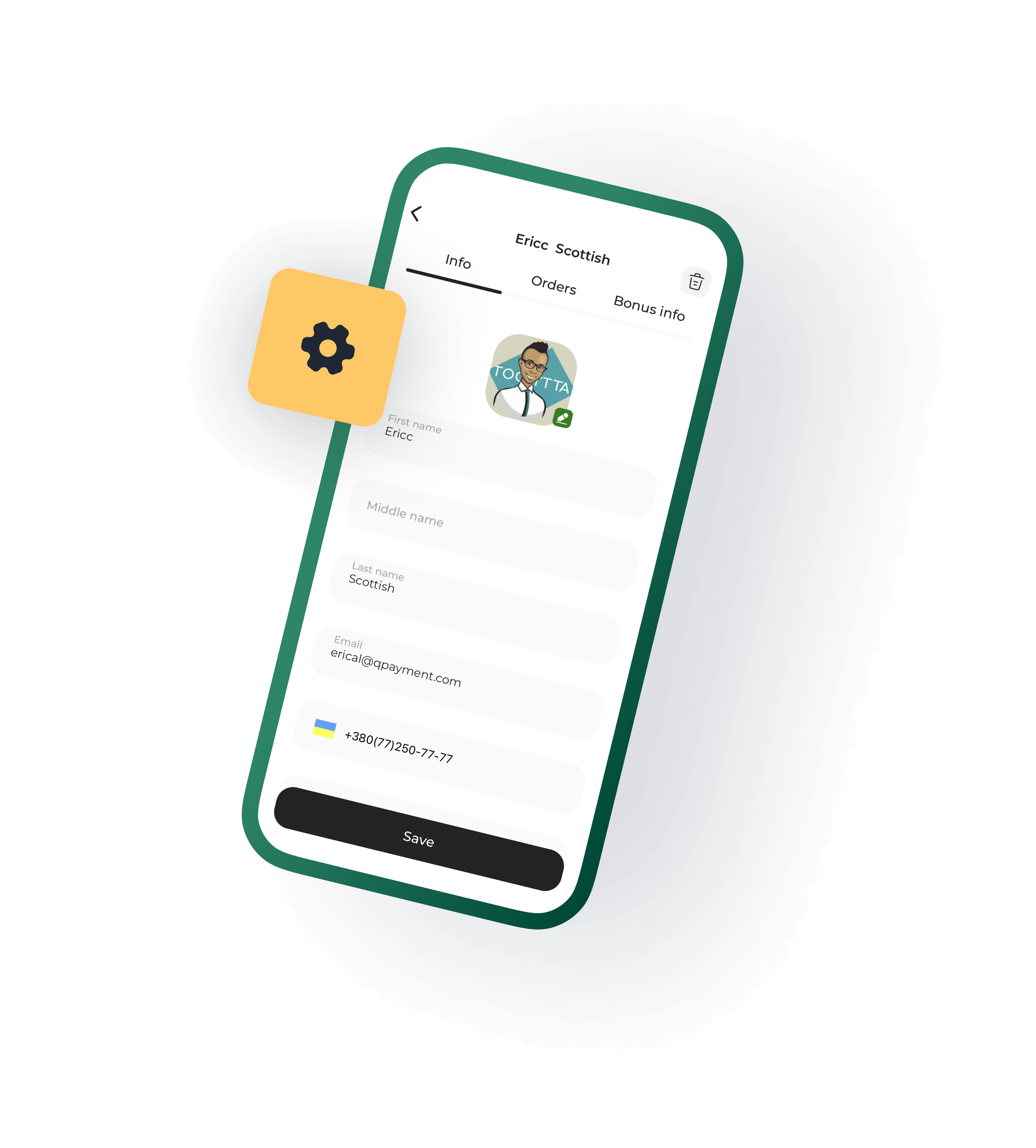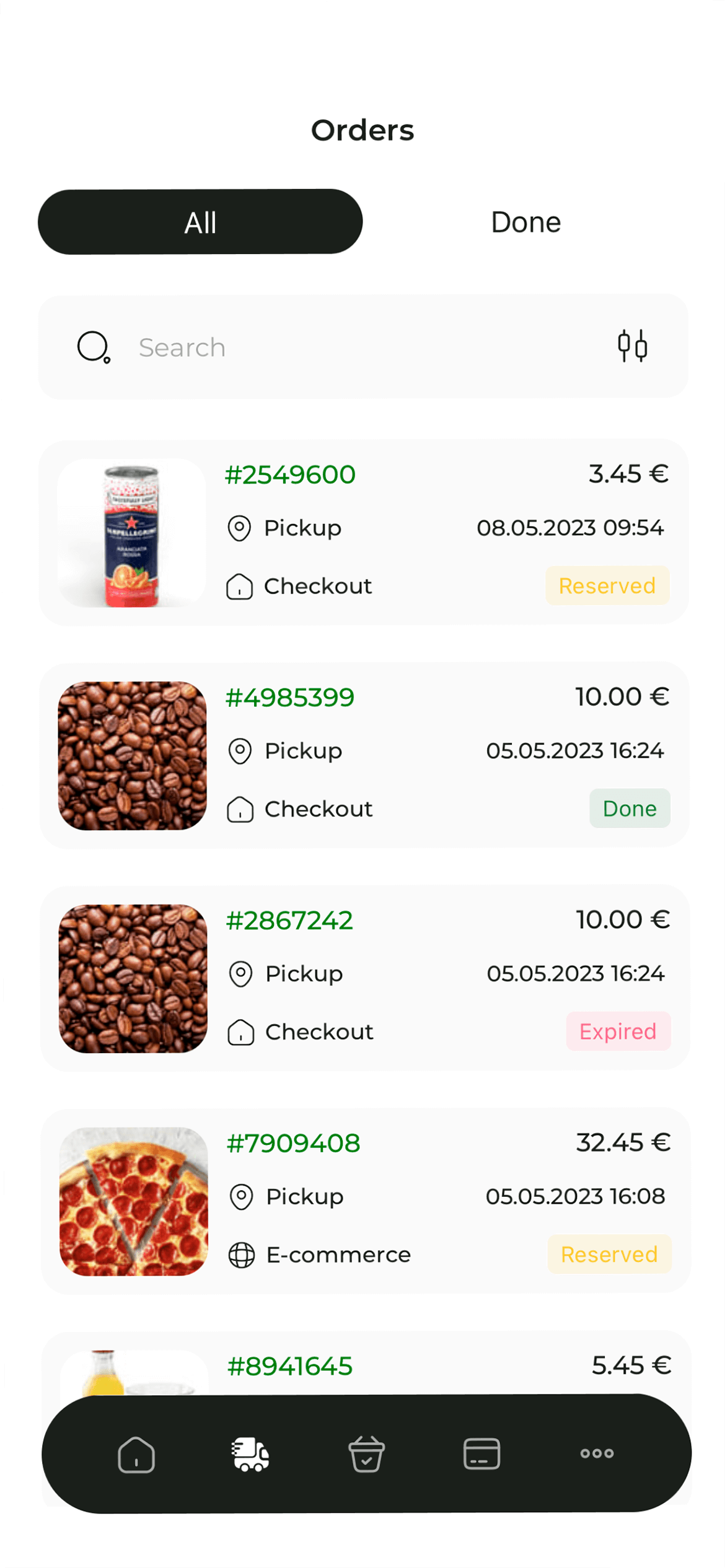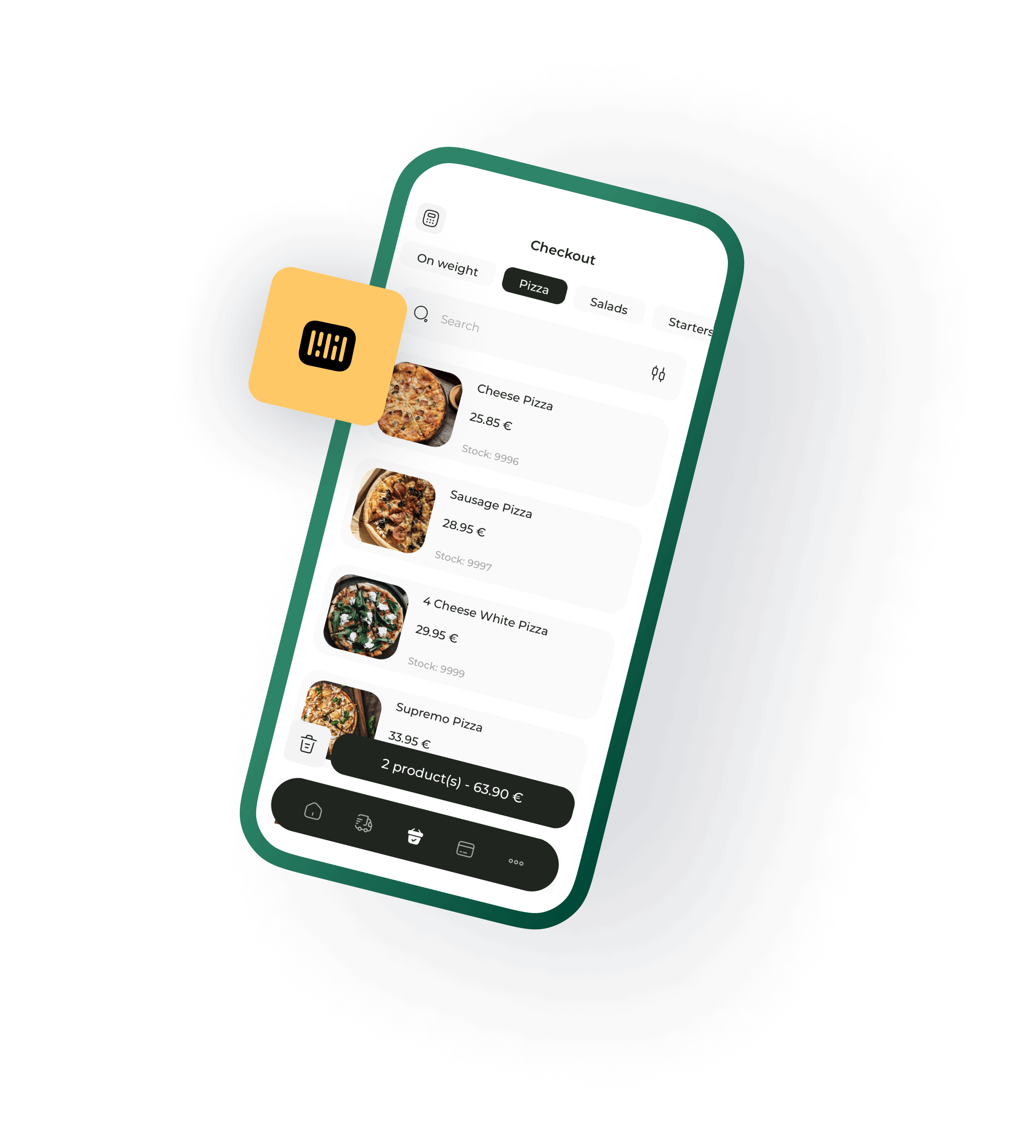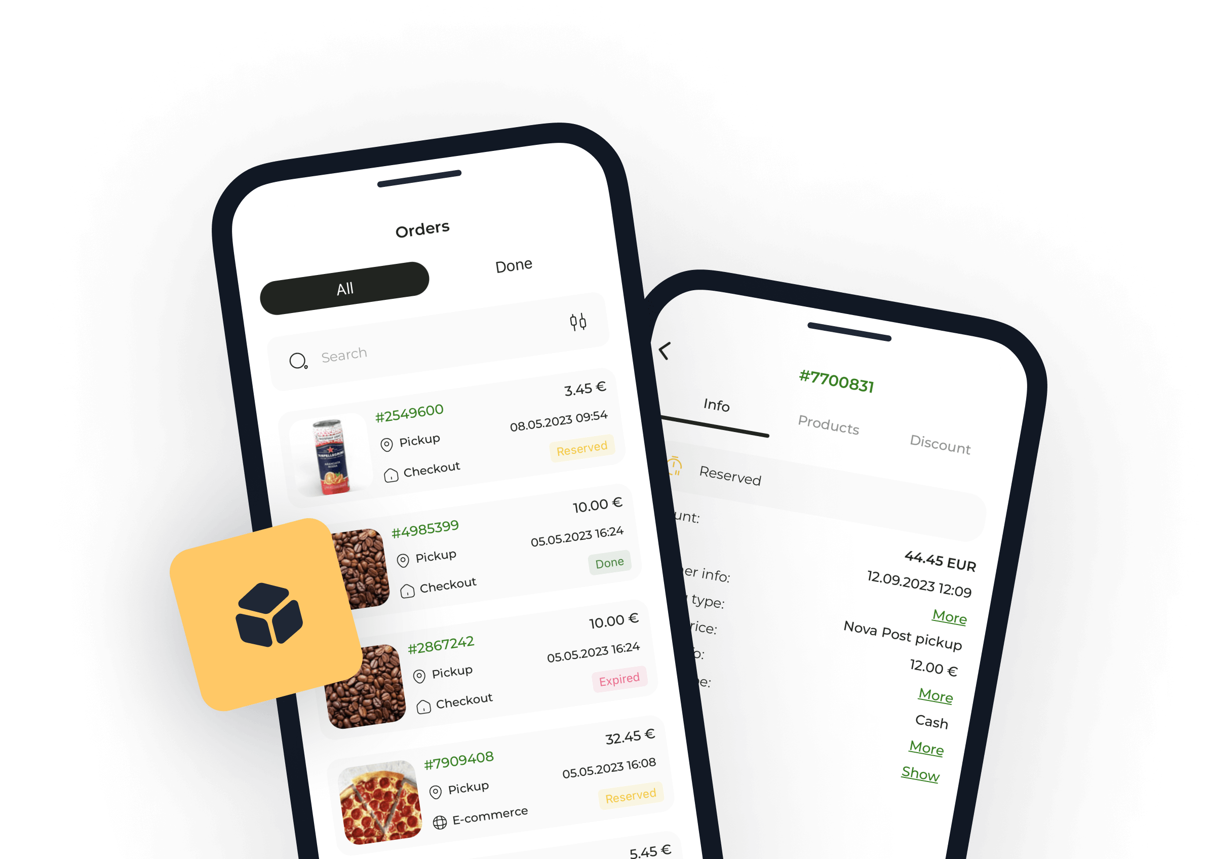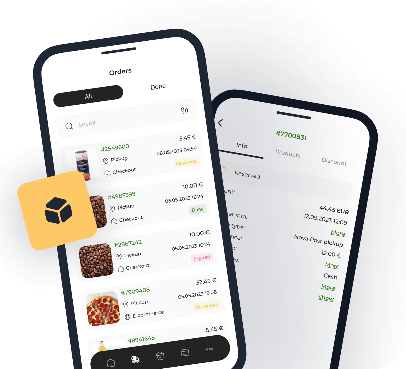 Merchants and their sellers can send or reserve orders via the in-app shop or via scanning barcodes. They can contact customers in person or by phone. Connecting orders with clients they are able to apply points or other loyalties. After payment, the system automatically generates a fiscal receipt.