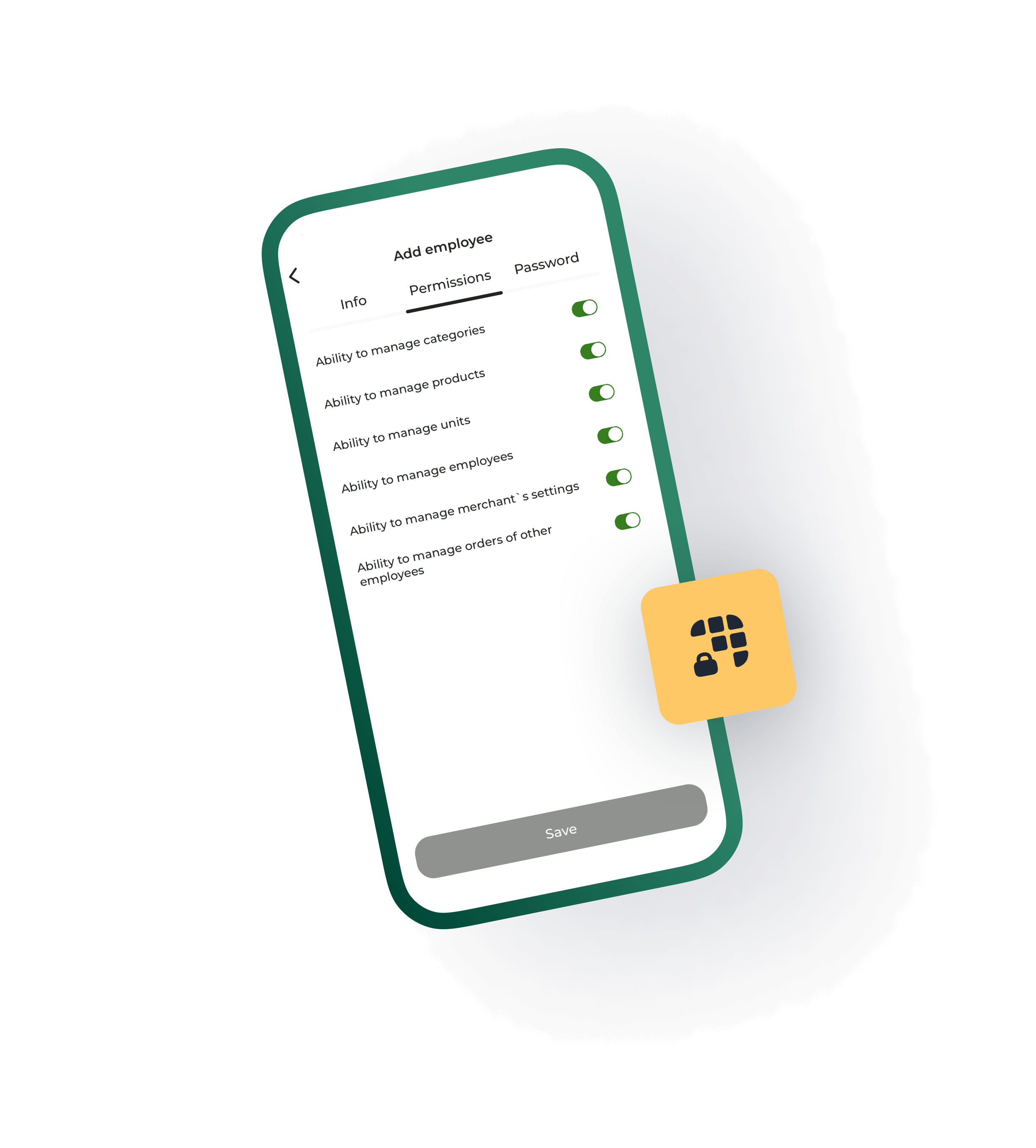 Merchants are able to add their teams and provide each person with their own app, and custom permissions. They also can connect sellers with orders and track personal statistics.