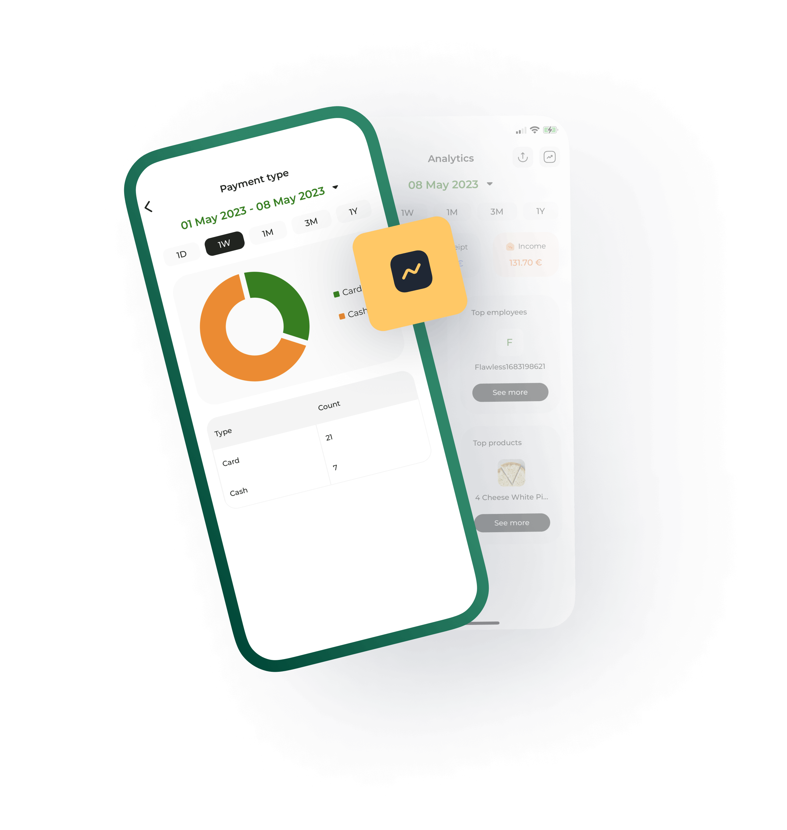 There are a lot of dashboards available for merchants to make data-driven decisions, including team, income, receipt statistics, top products, loyal customers, payments distributions by type, and much more.